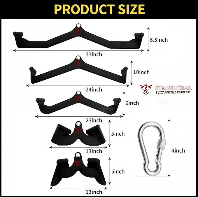 STRONGGEAR™ Premium LAT Pulldown Attachments, Cable Machine Attachment, Cable Attachments for Gym, Tricep Bar, Curl Bar, T Bar Row Attachment, LAT Pull Down Bar with Snaphooks